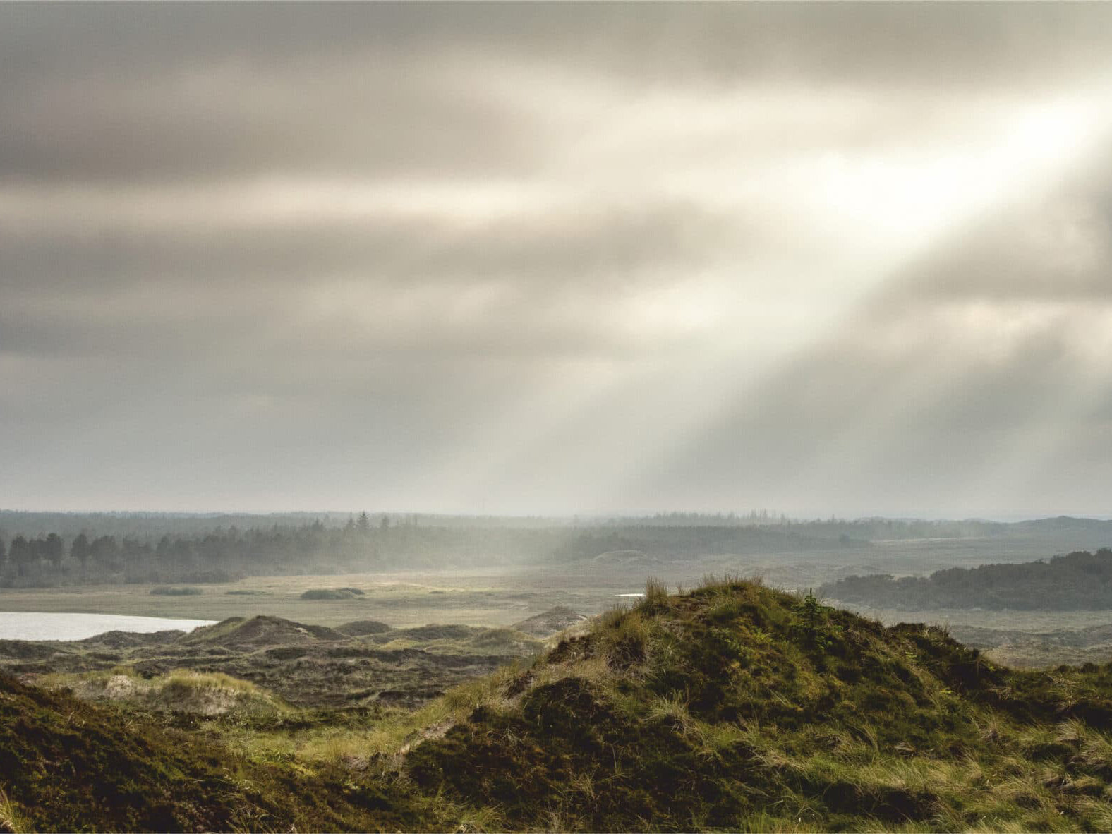 I Nationalpark Thy kan man bevæge sig mellem udstrakte, vindblæste vidder og duftende nåleskove. Her skifter både vejret og naturen konstant mellem en piskende vind fuld af salt, havduft ved kysterne, til milde briser inde i den våde, dampende skovbund.
